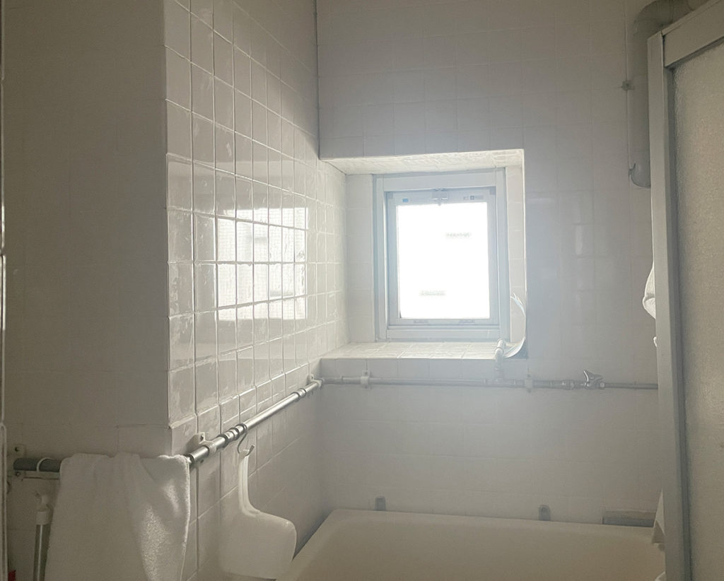 タイル貼りのお風呂。タイルのすき間(目地・めじ)がコンクリートの色だと、なんだか汚れて見えますよね・・・。