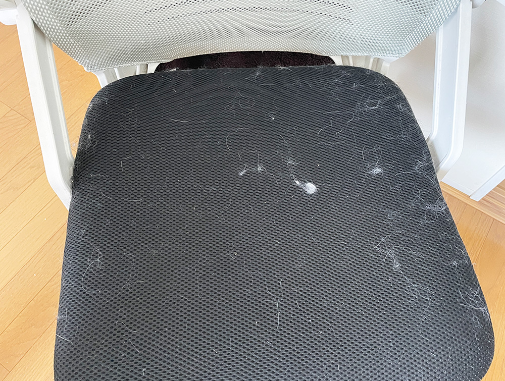 これまではファブリックの椅子を使っていたので、布地には必ず猫の毛が刺さっていました。