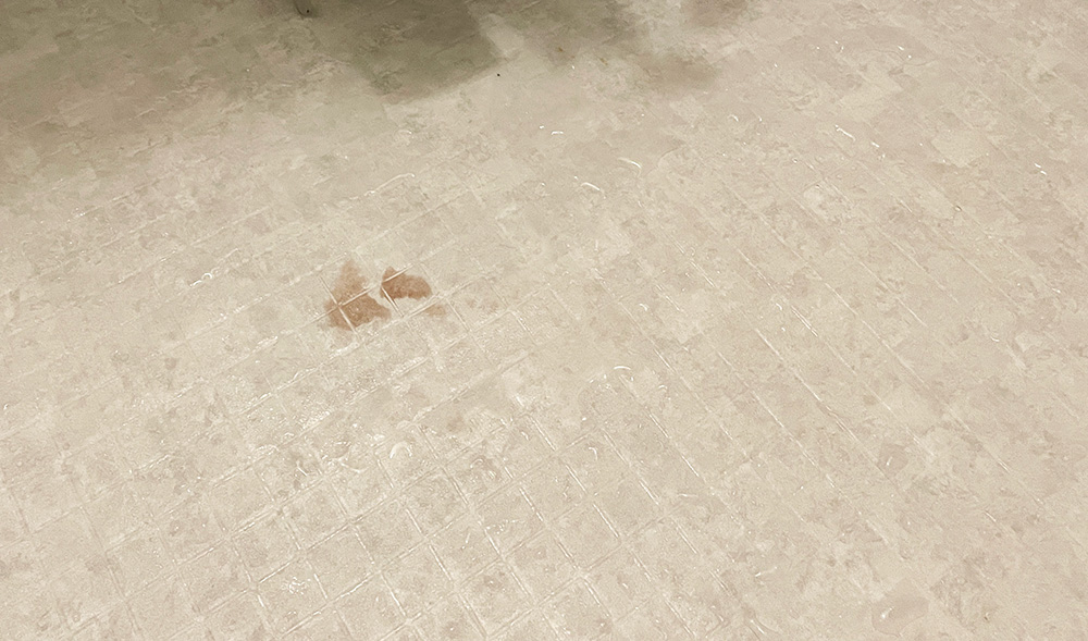 わが家(賃貸)で貼っている床は、お風呂の床材として人気の「バスナフローレ(クッションフロア)」ですが、問題なく漂白できました。