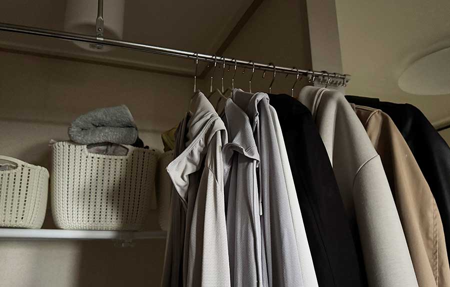 KEYUCAのハンガーに変えただけで、クローゼット全体が見違えるほどスッキリしました。