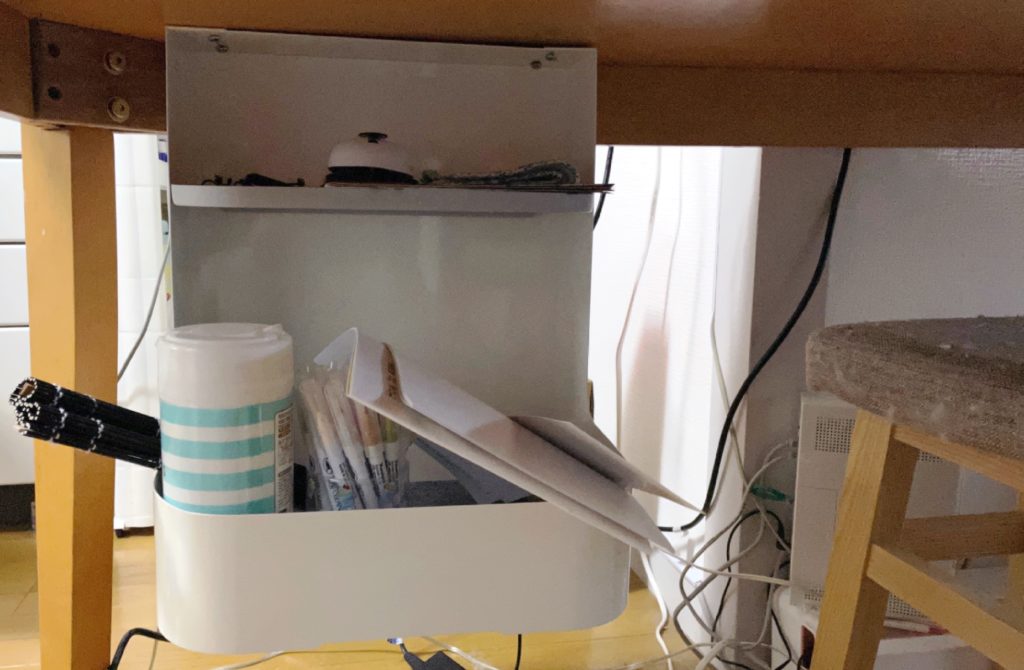 テーブルの上に出さない。ならば見えないところに隠します。