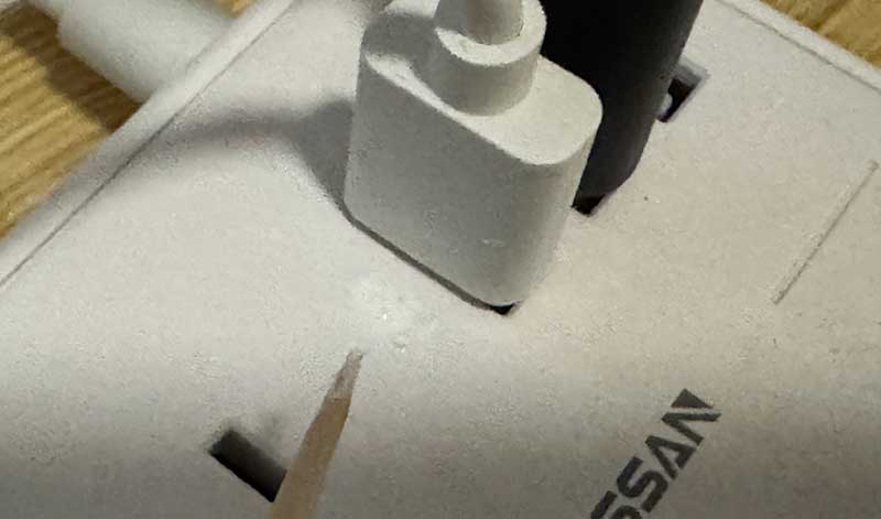 → 筆よりもつまようじのほうが、ピンポイントに塗れて失敗しません。 - LEDランプの上に「ちょんちょん」と塗る